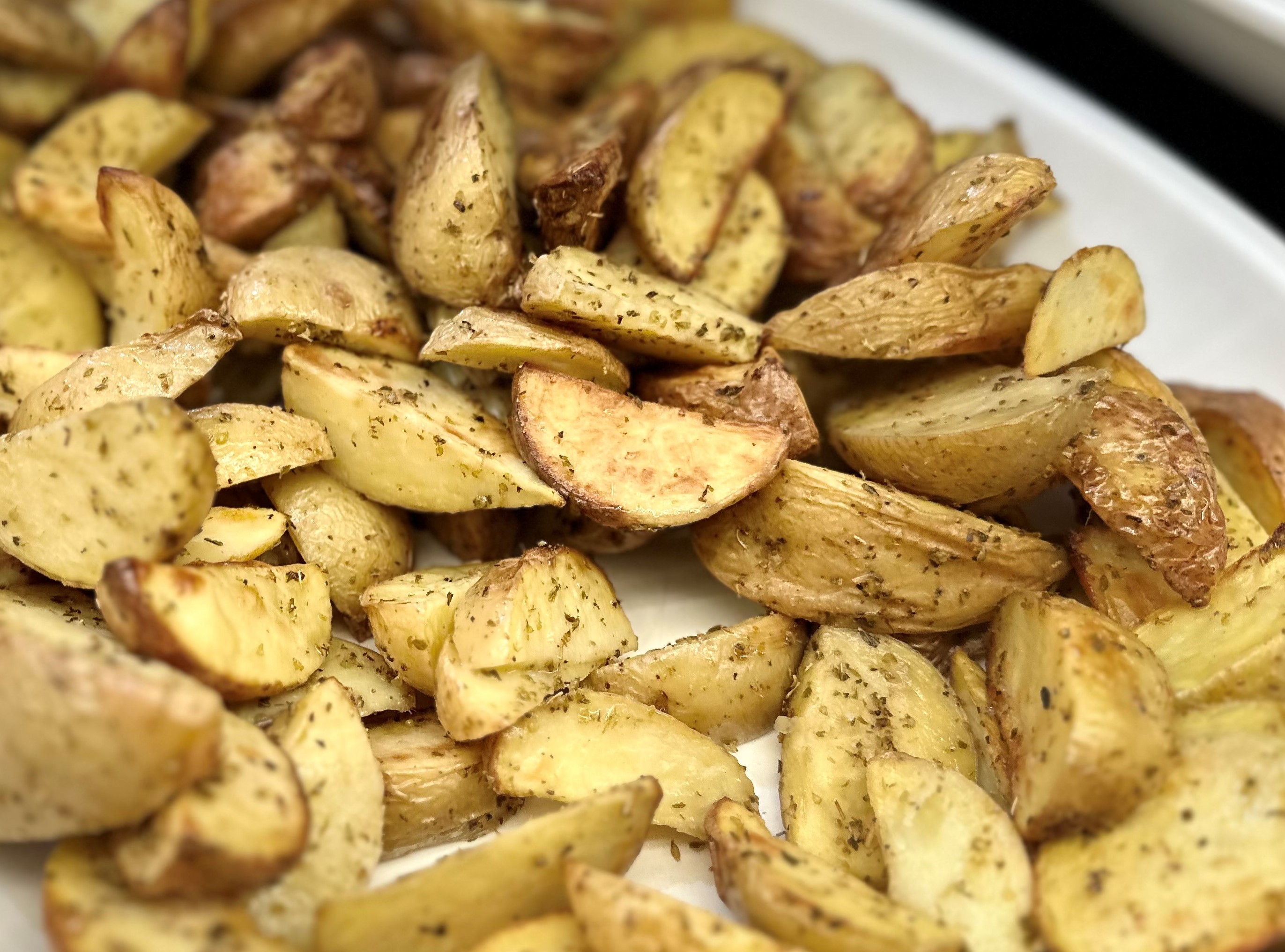 20 oz pan - yukon gold potatoes simply roasted with lemon and oregano (v,gf,df)
